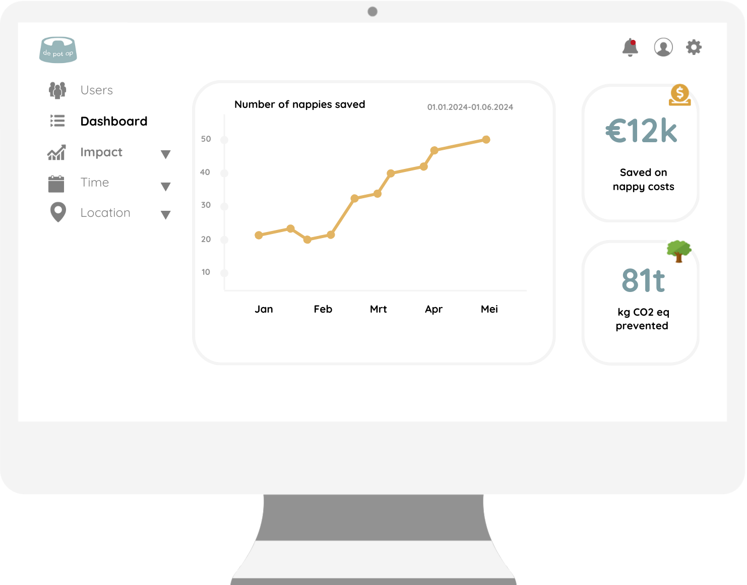 Through an interactive dashboard, the municipality and partners can monitor the progress of the Go Potty® program in real time (number of participating children, kilos of nappy waste saved etc.)