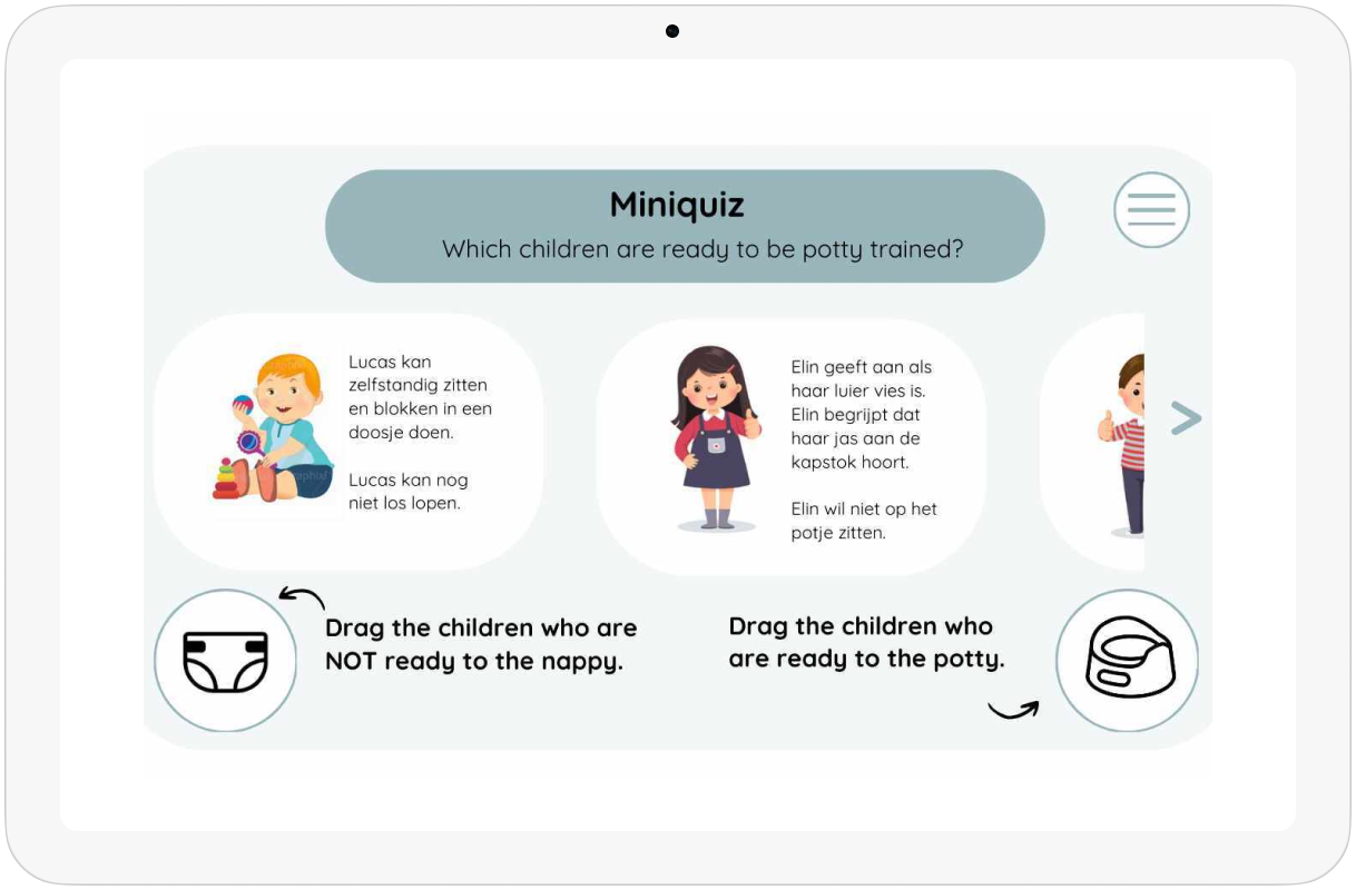 Nursery and child health centre staff get the right knowledge through an succinct e-learning and stimulate parents to start potty training with the Go Potty® app.